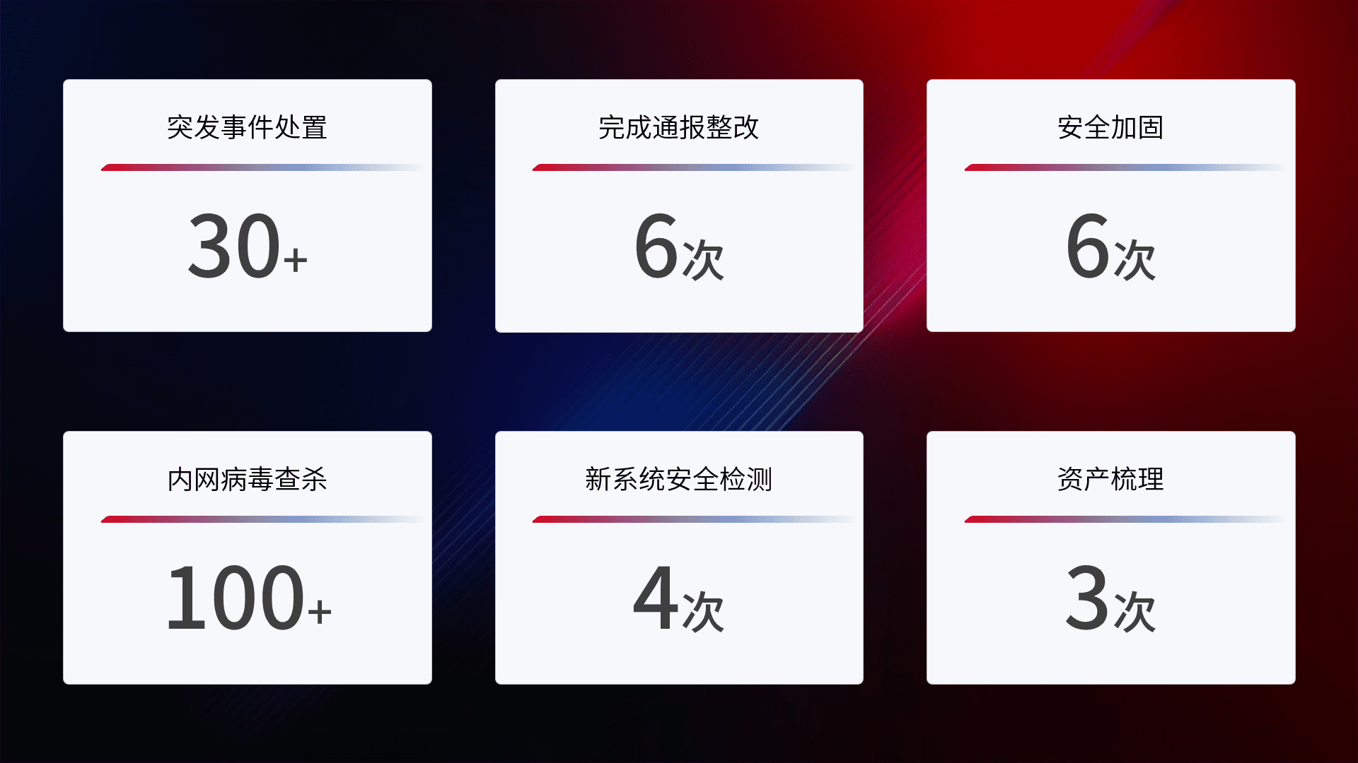 网络安全加固与风险管理:通过技术加固手段,,,,如加强区域隔离,,,缩减攻击内网横向移动的范围;优化现有网络安全管理制度,,,,降低网络威胁暴露面,,,减少被黑客攻击的可能性。。